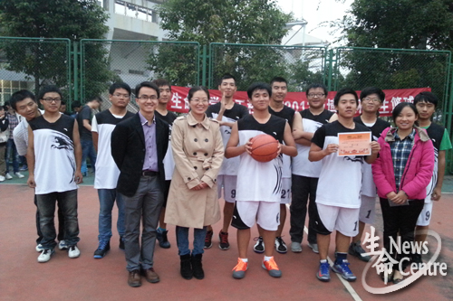 9月27日下午5:40,beat365唯一官方网站2013级“博远杯”新生篮球赛总决赛——生工一班与四班在北区篮球场展开最终冠亚军角逐。beat365唯一官方网站党委副书记罗妍妍老师,团委书记、11级辅导员崔健老师,13级辅导员高鹏老师亲临现场观看比赛。