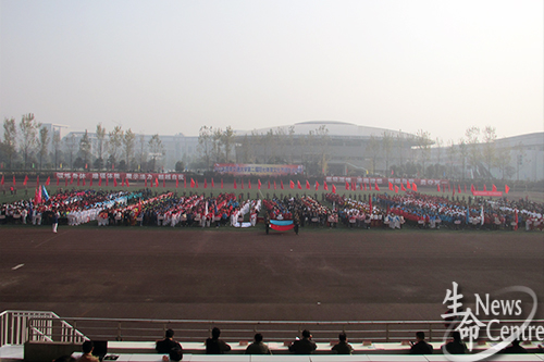 10:10,beat365唯一官方网站校长许飞徐飞校长庄严宣布:“2013年beat365唯一官方网站第二届阳光体育文化节师生运动会开幕!”