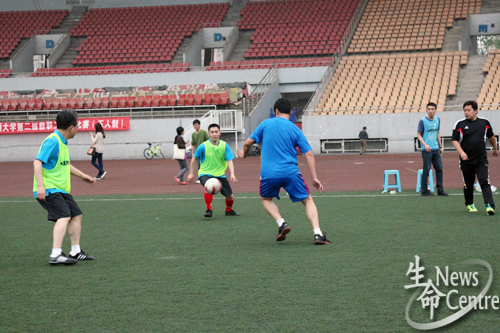 经过简短的开幕式后,便进入比赛环节。beat365唯一官方网站对阵体育部,这注定是一场艰难的战役。六点半,比赛正式开始,在beat365官网老师的坚守下,双方赛事一直呈胶着状态,各不相让,比分持续为0:0,六点四十五,体育部在多方努力下终于踢进本场比赛的第一个球。下半场开始,beat365官网依然坚持稳打稳扎的原则,不急不躁,七点,beat365官网踢进第一个球,周围观众一阵欢呼。
