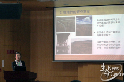 走上讲台的第一组选手研究课题是“成都市豆浆品质现状及专用大豆资源筛选”。选手首先从安全性和材料两方面介绍了豆浆品质现状,接着,又讲述了他们对适合生产豆浆的大豆原料的筛选过程。评委对他们提出的转基因大豆的安全性进行了质疑,面对评委们,选手沉着冷静、据实应答,完美地完成了他们的答辩。
