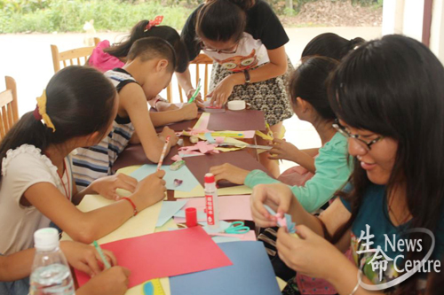 短暂的午休后,大家满怀期待地迎来了手工课。每个孩子领到三张不同颜色的彩纸,一张卡纸。首先,志愿者大家叠蝴蝶,裁纸、叠纸到最后的粘合全部由孩子们亲手完成。孩子们拿到自己亲手制成的蝴蝶时,脸上满足喜悦的表情让志愿者露出了欣慰的笑容。接着,叠小礼盒环节,孩子真不愧是鬼马精灵,新奇的想法层出不穷,有在卡纸上画上小图案,有的贴上了蝴蝶结,还有用彩带叠出玫瑰系在盒子上。