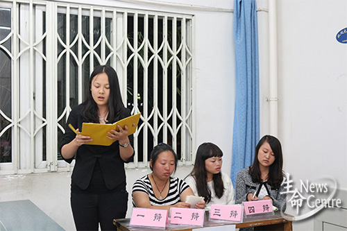 继主持人致开场词后,双方辩手分别入场。随后,主持人介绍比赛规则,并宣布比赛正式开始。