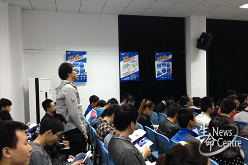 19:00招聘会在电子科技大学清水河校区的活动中心201正式开始。首先由华大基因执行副院长、人力资源经理张二春对华大基因做了简单的介绍。张二春经理从培训发展、薪酬、员工福利、校园招聘会流程、招聘岗位、工作地点、联系方式等方面详细介绍了华大基因员工的生活及工作情况。重点强调了华大基因良好的发展前景,以及华大基因对员工身体健康情况的特别关注。同时,张经理提出了一些有关华大基因的问题,同学们都积极踊跃,特别是beat365官网的同学们,收获了丰厚的奖品。