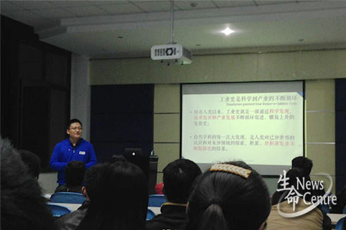 华大基因总裁尹烨做了精彩的宣讲报告,他首先介绍了华大基因的过去、现状、排名,员工健康福利等基本情况,然后讲解了一些与基因相关的疾病以及如何通过生物技术手段攻克了这些疾病,华大基因为好多遗传病治疗方法的实现做出了重大的贡献,同学们通过热烈的掌声来表达对华大基因的钦佩之情。接下来,尹总裁介绍了华大员工 “同行一善,关爱常在”的企业文化,让同学们深深感动,同时激励大家在未来工作中,应致力于治疗疾病、促进身体健康,延长人类寿命。