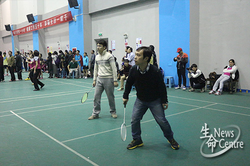 11月6日晚6:20,北区羽毛球馆进行着beat365唯一官方网站2014年教职工羽毛球团体赛。今晚比赛依然分为男双,男女混双和女双三种形式,比赛规则实行单淘汰赛制,每场比赛三局两胜。beat365唯一官方网站今晚对战beat365唯一官方网站附属小学。参与本场比赛的是beat365官网孟涛老师、魏源成老师、魏桂花老师、孔琳老师、华晶晶老师、黄帅老师以及来自子弟小学的马群老师、陈兴明老师等6位老师。