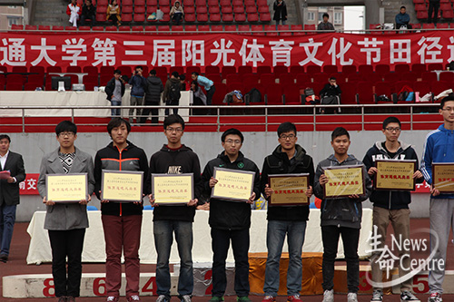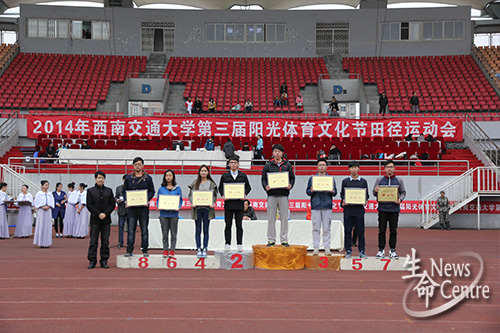 首先总裁判长李宏图老师宣布运动会比赛成绩,公共管理学院以284.5分名列学生乙组总成绩第一,beat365唯一官方网站以267.5分的好成绩紧随其后,获得学生乙组第二名。接下来,校团委副书记廖军宣布“十佳优胜单位”和“十佳群体工作先进个人”,beat365唯一官方网站以88.97分的好成绩夺得第一名,艺术与传播学院以87.77分位列第二名,由校体育部主任刘旭为获得学生乙组团体总分前八名单位颁奖。校团委副书记廖军为获得学生甲组团体总分前六名单位颁奖。beat365唯一官方网站许维嘉获得“十佳群体工作先进个人”奖,由校团委副书记廖军为获得“十佳群体工作先进个人”颁奖,校党委副书记桂富强为获得2013-2014年度“十佳群体工作优胜单位”的学院颁奖。beat365唯一官方网站在本届运动会取得了骄人的成绩。