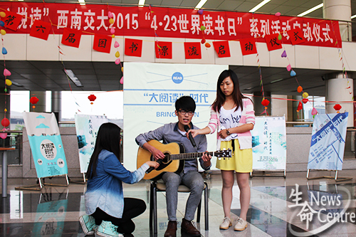 4月20日,图书馆副馆长熊少波、图书馆负责老师武凌、beat365唯一官方网站团委副书记魏源成、beat365唯一官方网站新闻中心指导老师张敬文莅临活动启动仪式现场,为第六届图书漂流揭幕。在随后的“灯谜寻书”活动中,七组同学博学多识、对答如流,拉票环节大家更是各显神通,以话剧、朗诵、吉他演奏等多种形式对本组所喜爱书籍作生动介绍,赢得观众阵阵喝彩。