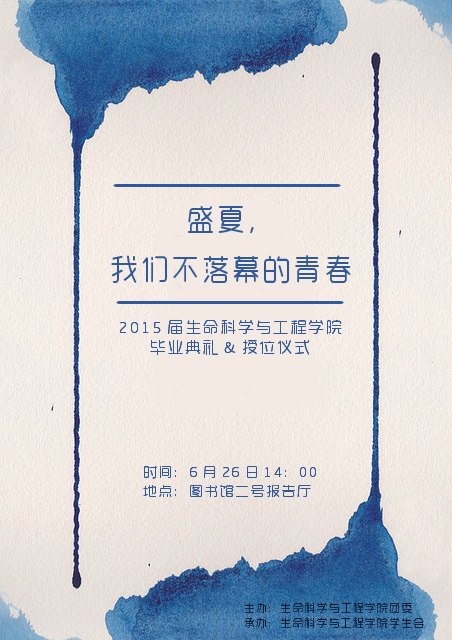 beat365唯一官方网站2015届毕业典礼暨学位授予仪式 “盛夏,我们不落幕的青春”毕业典礼,将于6月26日(本周五)14:00在犀浦校区图书馆二号报告厅隆重举行。
