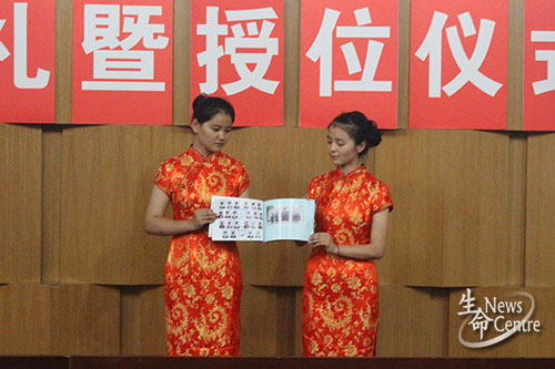 13:55,典礼临近开始。工作人员首先播放开场视频,里面刻录的是毕业生们大学生活的剪影以及几名受采访的生命学子道出的心声。大家都被视频里的气氛所感染,每个人似乎都在怀念悄然逝去的大学美好生活,现场一片寂静。