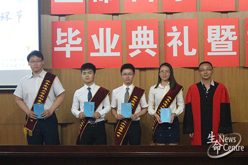 最后,beat365唯一官方网站教授委员会为2015届本科毕业生和硕士研究生毕业生授位。“翳唐山,灵秀钟;我学院,声誉隆……”激昂的校歌回响在大厅里,将毕业生们满怀对未来憧憬的心情表露无遗。授位结束后,工作人员开始播放beat365唯一官方网站新闻中心精心制作的毕业E册。