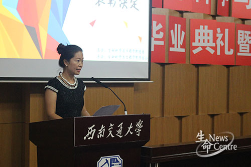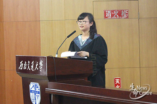 之后,本科毕业生代表夏林进行发言,她表达了毕业的复杂心情:激动、不舍、怀念,同时,亦表达了对学院老师们的感谢;硕士研究生代表李慧随即发言,同样对老师们的辛勤付出表示感激,此外,她回顾七年的交大生活,深情饱满的演说牵动着每一位毕业生的心;作为教师代表,李遂焰老师对毕业生们取得的优异成绩表示祝贺,并希望他们能够常回学校看看。