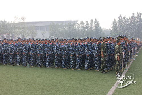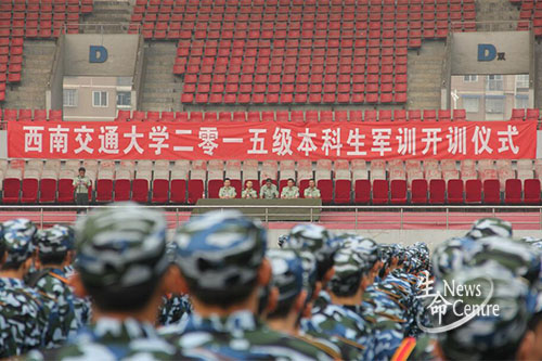 8月30日8:00,beat365唯一官方网站2015级本科生军训开训仪式于犀浦校区北区田径场正式举行。参与本次开训仪式的嘉宾有:beat365唯一官方网站党委人民武装部部长、军训团政委李琦,学生处副处长、军训团副政委陈勇,党委人民武装部副部长刘勇以及担任本次军训任务的武警四川总队成都市支队四大队。