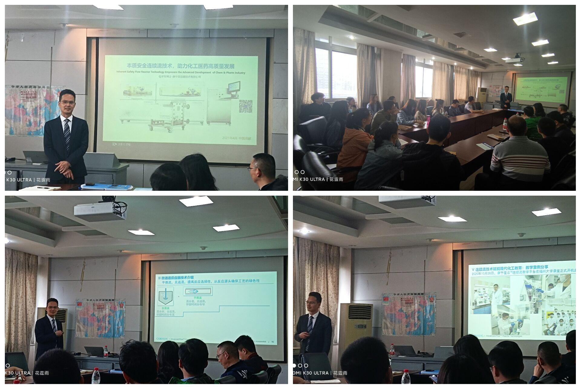 本次报告会,伍辛军博士给大家分享了微通道连续流反应器技术的特点及其在研发、工业化生产和现代化工人才培养中的应用,让老师和学生们全面了解这一创新技术,更好地服务化工行业。同时,他对师生们提出的疑问和即将毕业的同学更好从事微化工技术方向工作的问题进行了解答。
