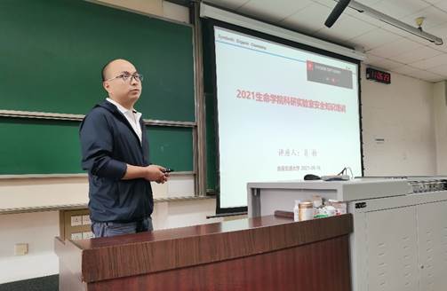 肖检老师从实验室安全概述、实验人员应具备的安全素养、实验室危险源、实验室安全基本要求、实验室常见爆炸原因、应急处理五个方面进行了本次实验室安全知识培训,通过近年来多起多类不同程度的校内外实验室安全事故案例,向同学们深刻阐述了遵守实验室安全规范的重要性。他强调,实验室人员应当具备“安全第一”的科研理念,规范进行实验操作才是一个形式合格的科研工作者。