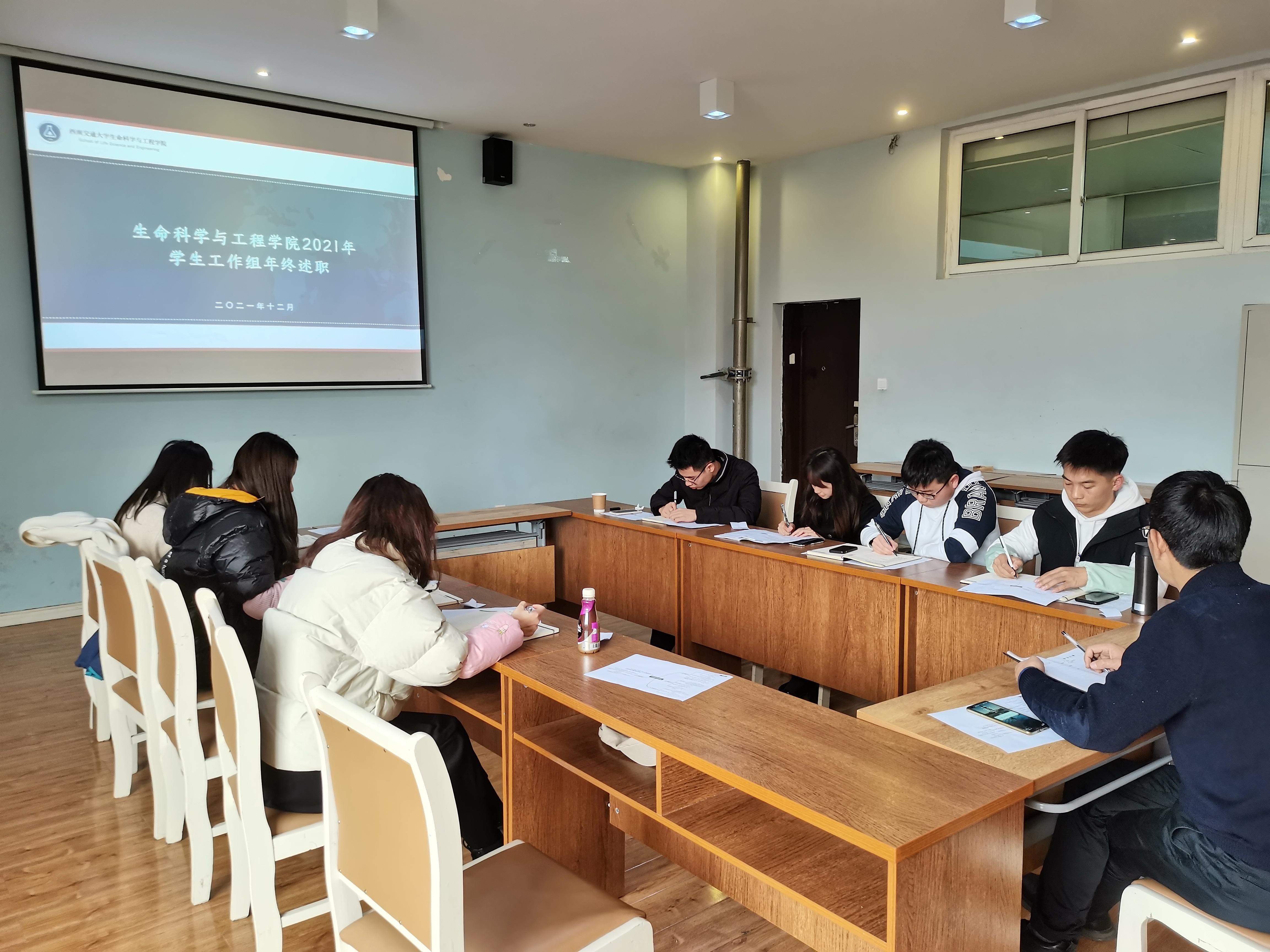 学工组副组长高鹏用“有思考”、“有亮点”总结自己2021年度的工作优点,指出新的一年要围绕“守正创新”,提前制定学生工作计划,创新学生工作形式,打造品牌育人活动,重凝练,勤思考,推动学生工作迈上新的台阶。兼职辅导员龙臻围绕“全员 全方位 全过程”的三全育人理念总结了自己的就业工作亮点,为在场辅导员介绍了宝贵的经验。兼职辅导员黄斌翰以“规范 丰富”两个关键词概述自己的学生工作,总结了研究生新生入学教育成果及研究生会和研究生党建成果。每位辅导员都认真思考,在总结中找差距,明方向,强信心,立志为培养德智体美劳全面发展的社会主义建设者和接班人贡献生命学工的力量。
