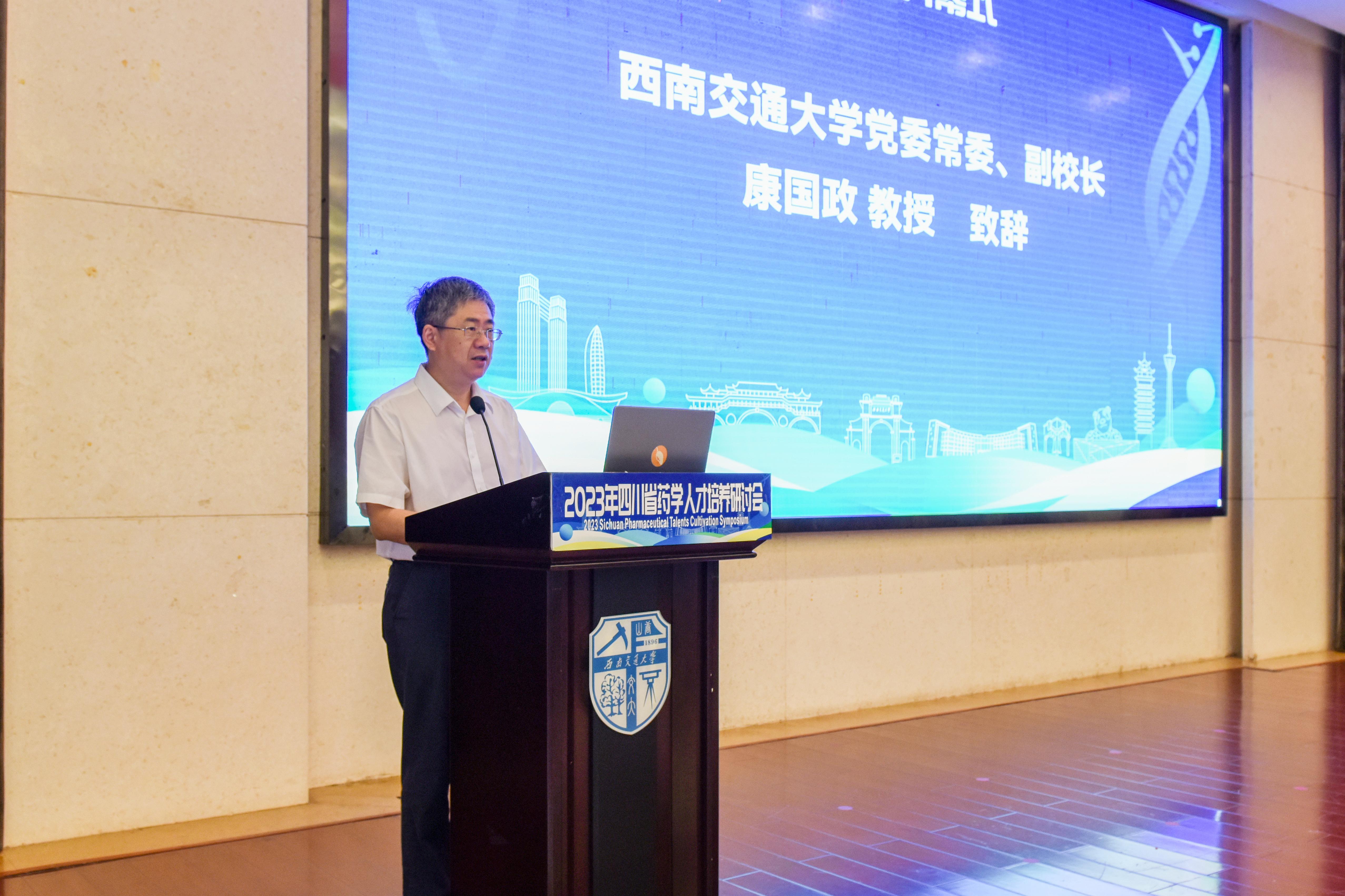 为推动药学人才培养高质量发展, 8月19日-21日,由四川省药学类专业教学指导委员会、四川省药学会药学教育专委会主办,四川省天然药物仿生合成工程研究中心、beat365唯一官方网站beat365唯一官方网站承办的“2023年四川省药学人才培养研讨会”在beat365唯一官方网站峨眉校区召开。beat365唯一官方网站党委常委、副校长康国政,教育部高等学校药学类专业教学指导委员会主任委员、中国药学会药学教育专业委员会主任委员、中国药科大学副校长姚文兵,四川省药学会理事长蒋学华,以及来自中国药科大学、复旦大学、哈尔滨医科大学、四川大学、beat365唯一官方网站、成都中医药大学、成都大学、西南医科大学、成都医学院、四川省生物医药产业集团等单位的100余名生物医药领域的专家学者齐聚beat365唯一官方网站,共同探讨高质量药学人才培养、一流专业和一流课程建设、课程思政、产学研协同育人问题。开幕会由beat365唯一官方网站研究生院常务副院长、beat365唯一官方网站院长周先礼主持。