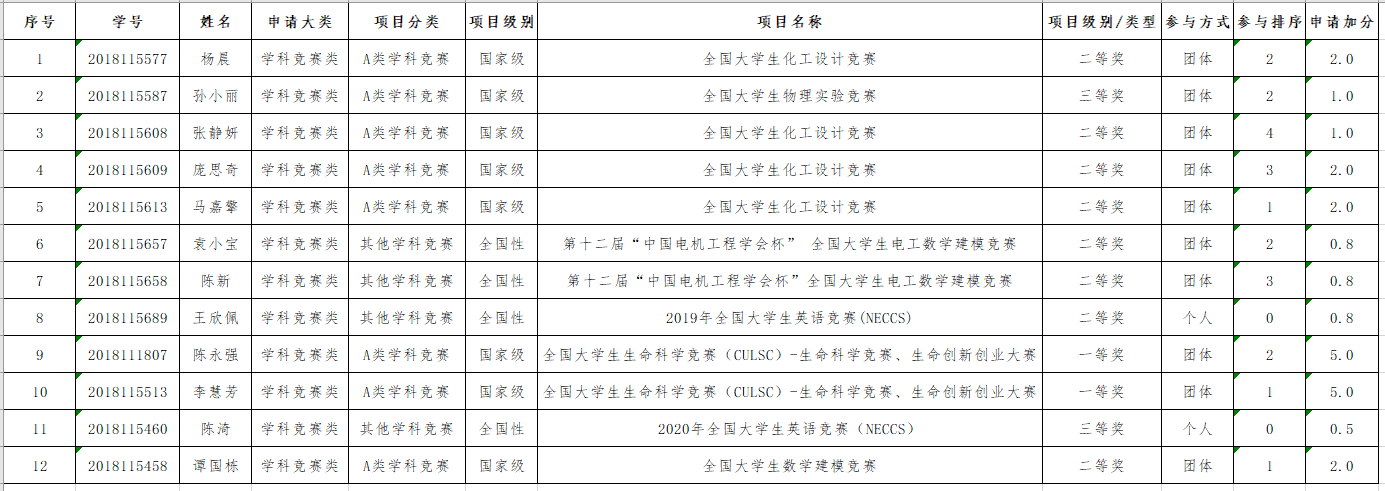 根据学生提交加分申请情况,需参加答辩学生名单如下,请按照序号顺序进行答辩: