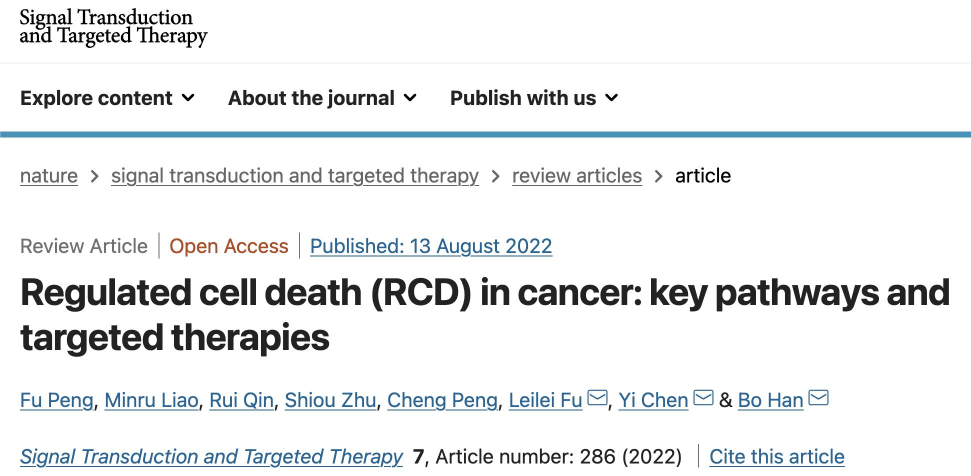 符雷蕾副教授合作在Signal Transduction and Targeted Therapy发表综述