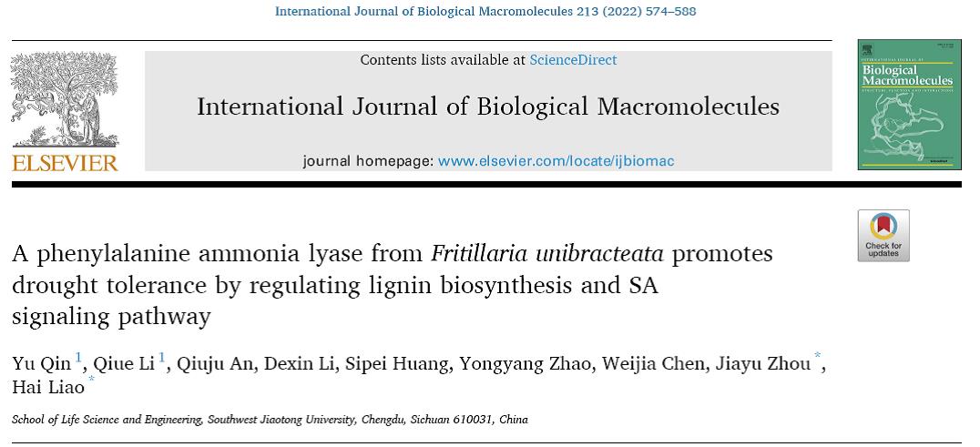 “药用植物资源与分子生物学”实验室发现高原药用植物——暗紫贝母响应干旱胁迫的关键PAL基因