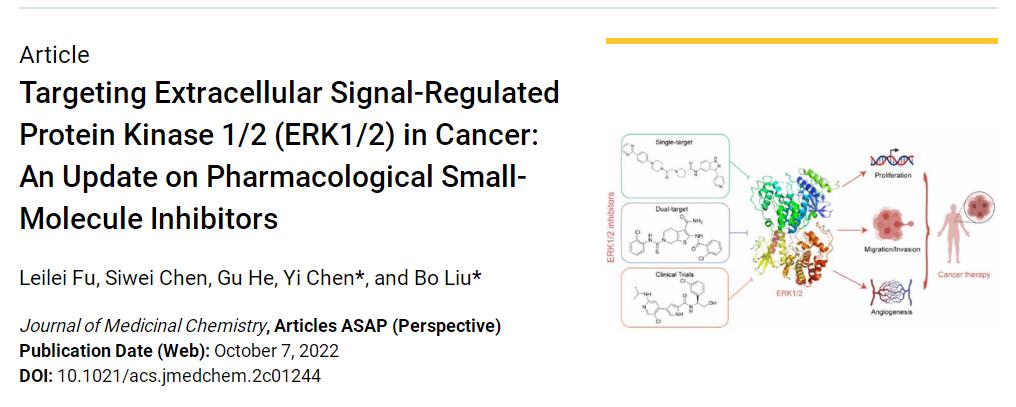 2022-10-08近日,符雷蕾研究小组在药物化学领域Top期刊Journal of Medicinal Chemistry上发表综述《Targeting Extracellular Signal-Regulated Prote...