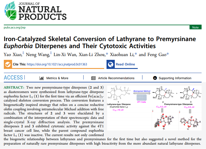 “小分子天然药物”团队实现金属催化的天然稀有 Premyrsinane二萜的高效转化合成