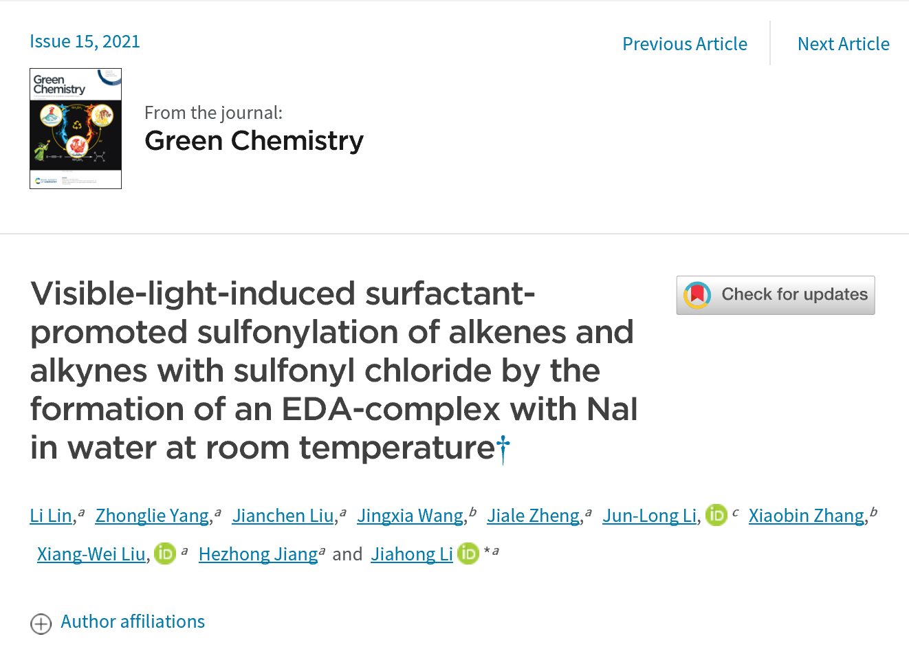 化学顶级期刊Green Chemistry发表beat365官网李加洪博士团队最新研究成果