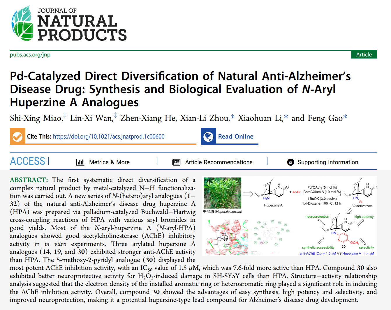 “小分子天然药物”团队在金属催化的天然药物选择性直接修饰研究领域取得重要成果