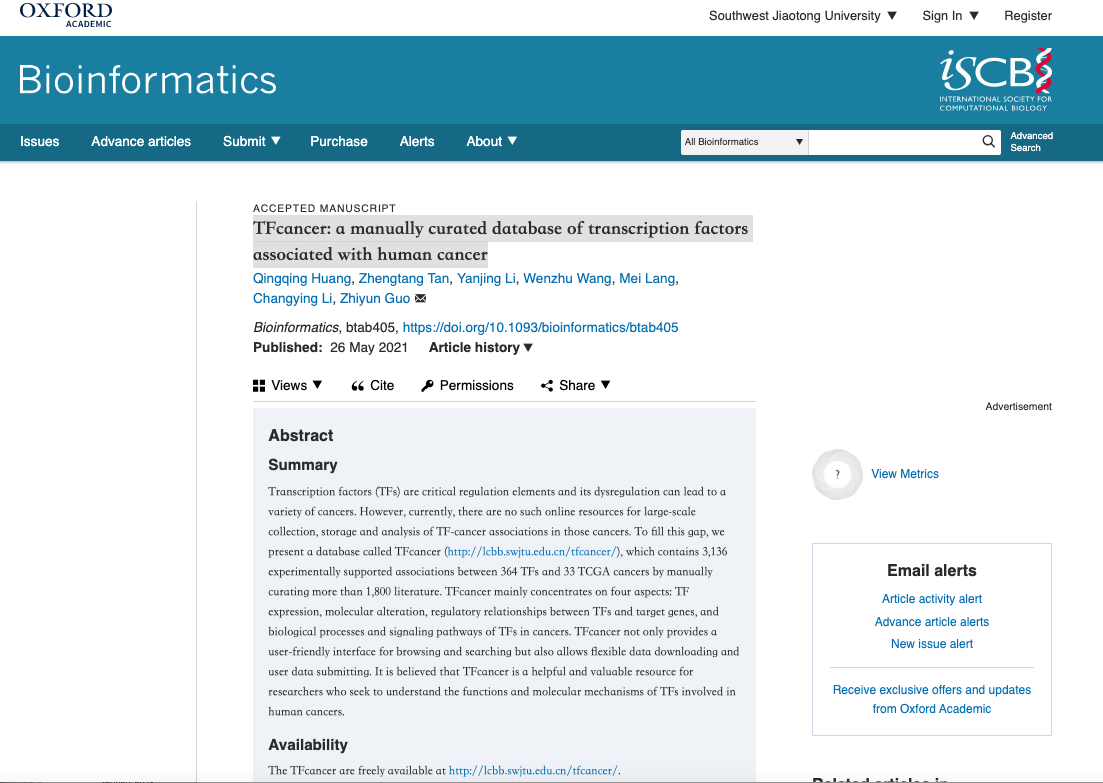 2021-06-03 近日,生物信息学领域顶级期刊《bioinformatics》(生物领域Top期刊,中科院计算生物学领域1区,影响因子6.937)在线发表了西南...