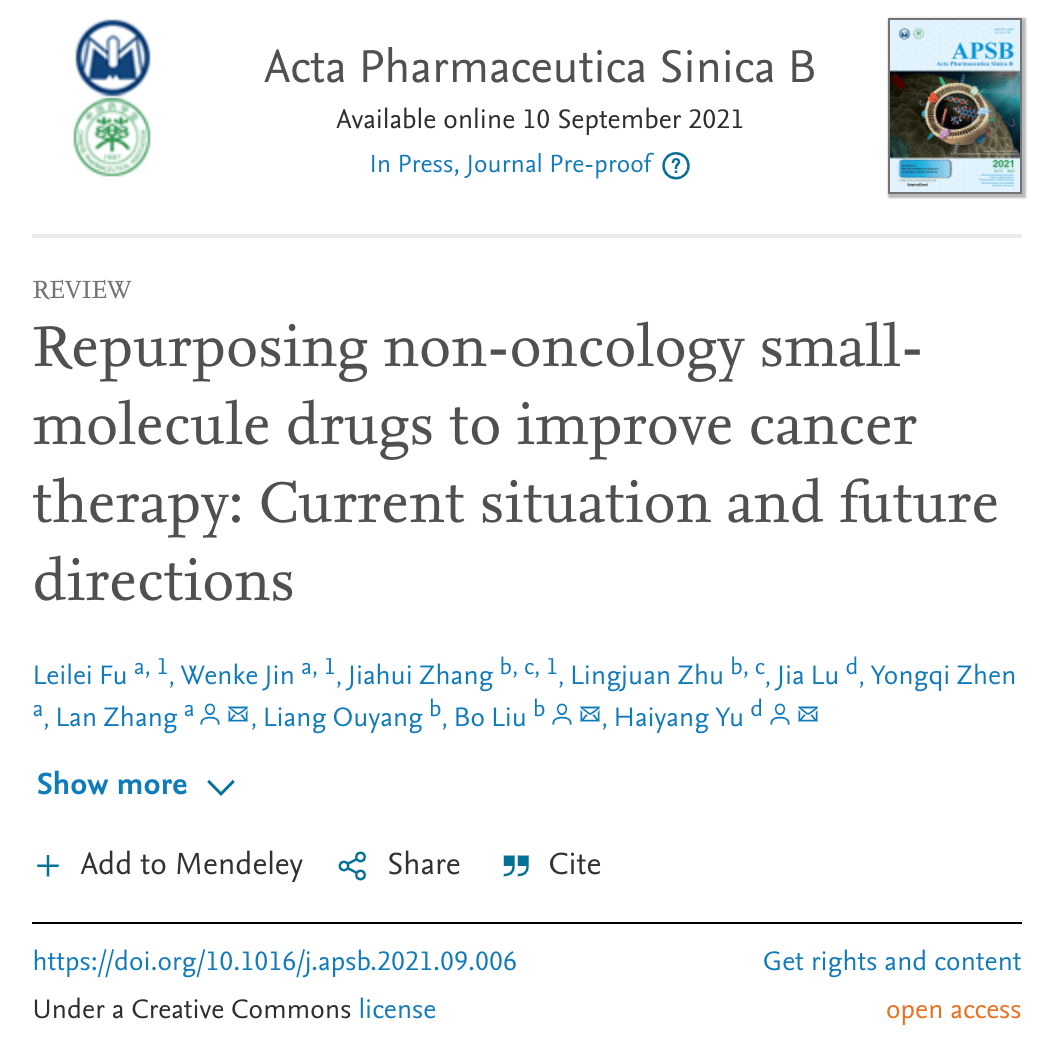beat365官网符雷蕾副教授和张岚副教授在药学Top期刊APSB发表综述