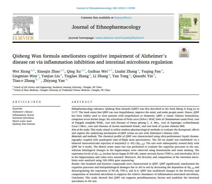 beat365官网闫智勇教授课题组在中药药理学权威期刊《JOURNAL OF ETHNOPHARMACOLOGY》上发表高水平论文