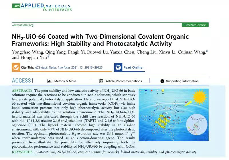 2021-09-18 近日,beat365唯一官方网站beat365唯一官方网站王萃娟副教授课题组在材料领域Top期刊《ACS Applied Materials & Interfaces》 (影响因子:9...