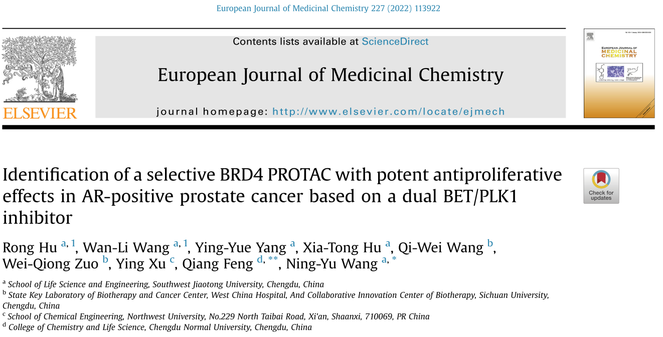 beat365官网王宁宇课题组在《European Journal of Medicinal Chemistry》上发表高水平论文