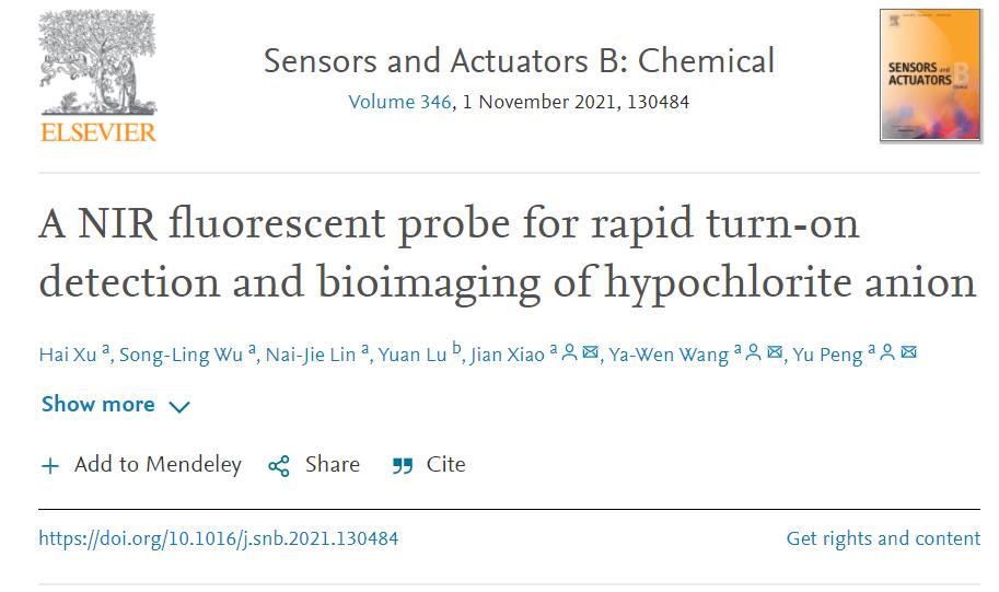 beat365官网王雅雯教授课题组在《Sensors and Actuators: B. Chemical》和《Organic & Biomolecular Chemistry...