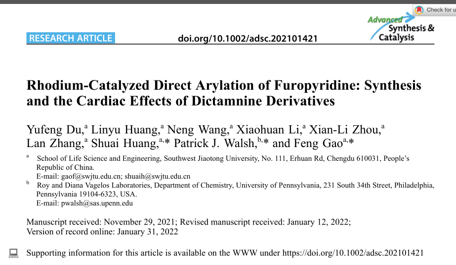 2022-03-03近日,有机化学领域权威期刊 《Advanced Synthesis & Catalysis》 (IF = 5.837)报道了beat365官网“小分子天然药物” 团队的研究成果“Rhodiu...