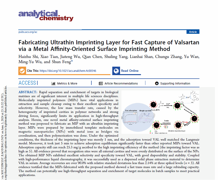 “生命分析技术与材料”实验室在Analytical Chemistry发表研究论文:采用金属亲和定向表面印迹的方法制...